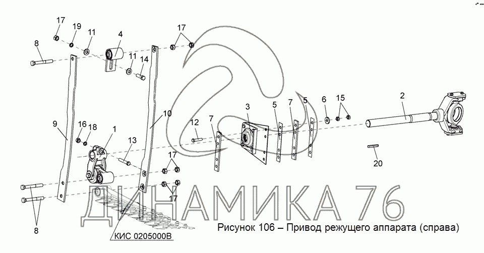 Перечень комплектующих от Привод режущего аппарата (справа) на КСК-100А-3