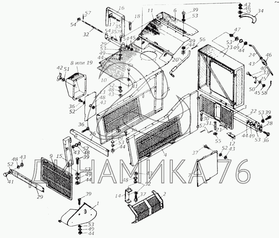Перечень комплектующих от Капоты воздухоочистителя и ограждения КИЛ 0128000 на КСК-100А