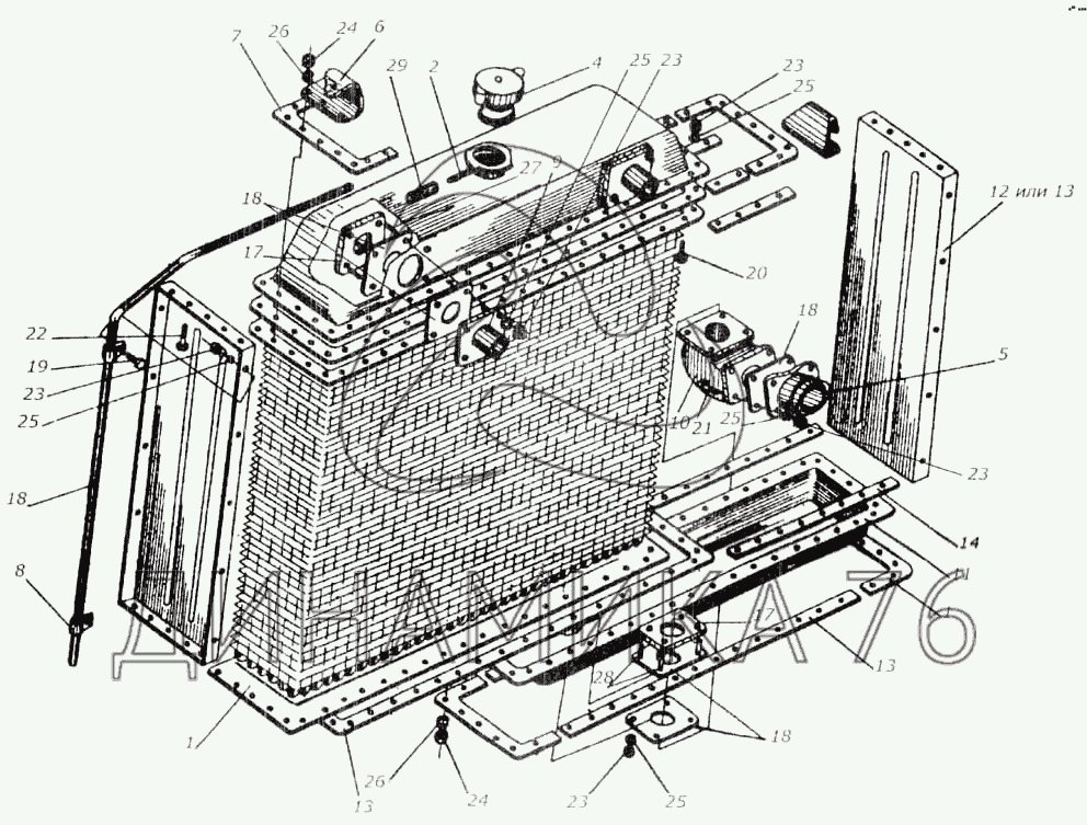 Схемы запчастей предназначены для справочных целей! Мы продаем не все запчасти от Радиатор водяной КИЛ 0106160 на КСК-100А, представленные в этом списке.