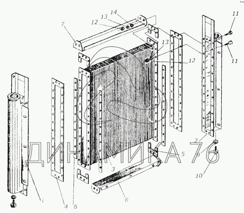 Перечень комплектующих от Радиатор воздушный КИЛ 0106010 на КСК-100А