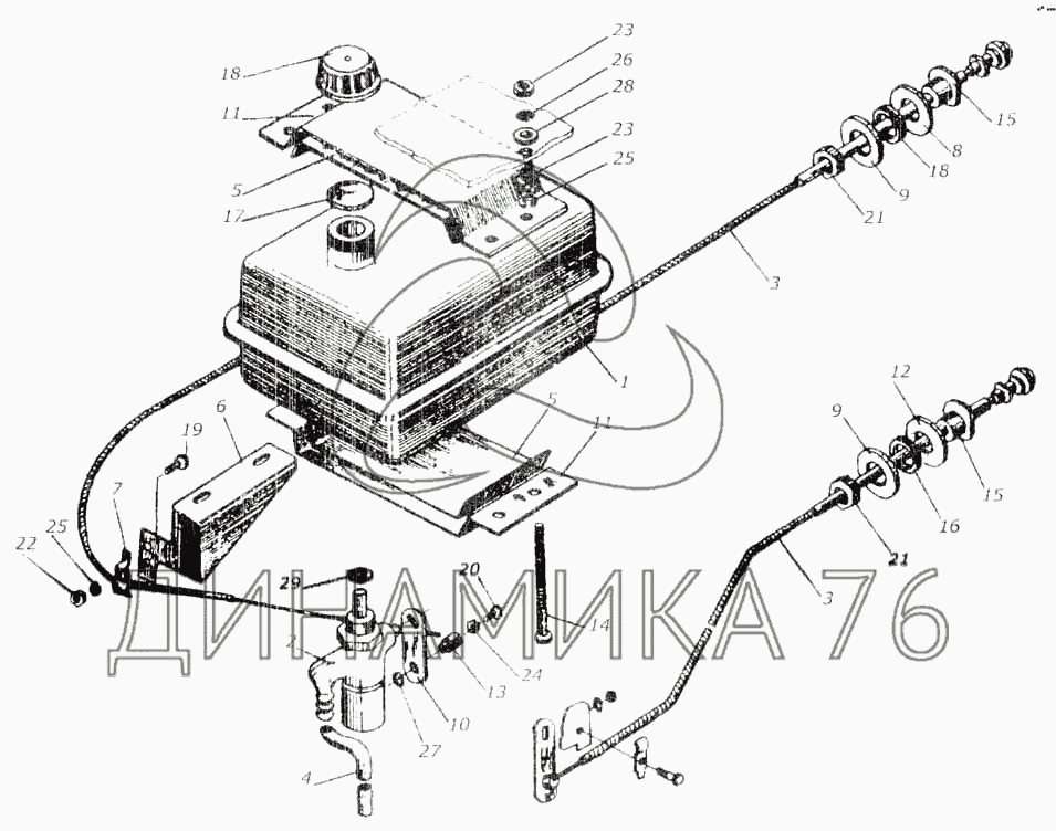 Схемы запчастей предназначены для справочных целей! Мы продаем не все запчасти от Установка бачка топливного КИС 0106600А на КСК-100А, представленные в этом списке.