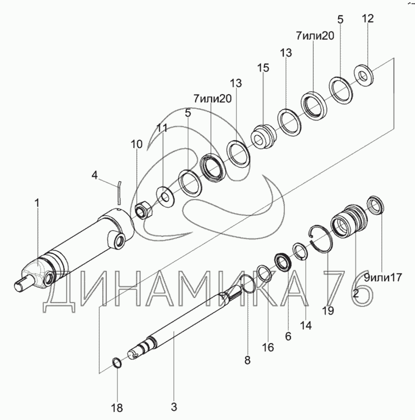 Перечень комплектующих от Гидроцилиндр КИЛ 0118810 на КСК-600