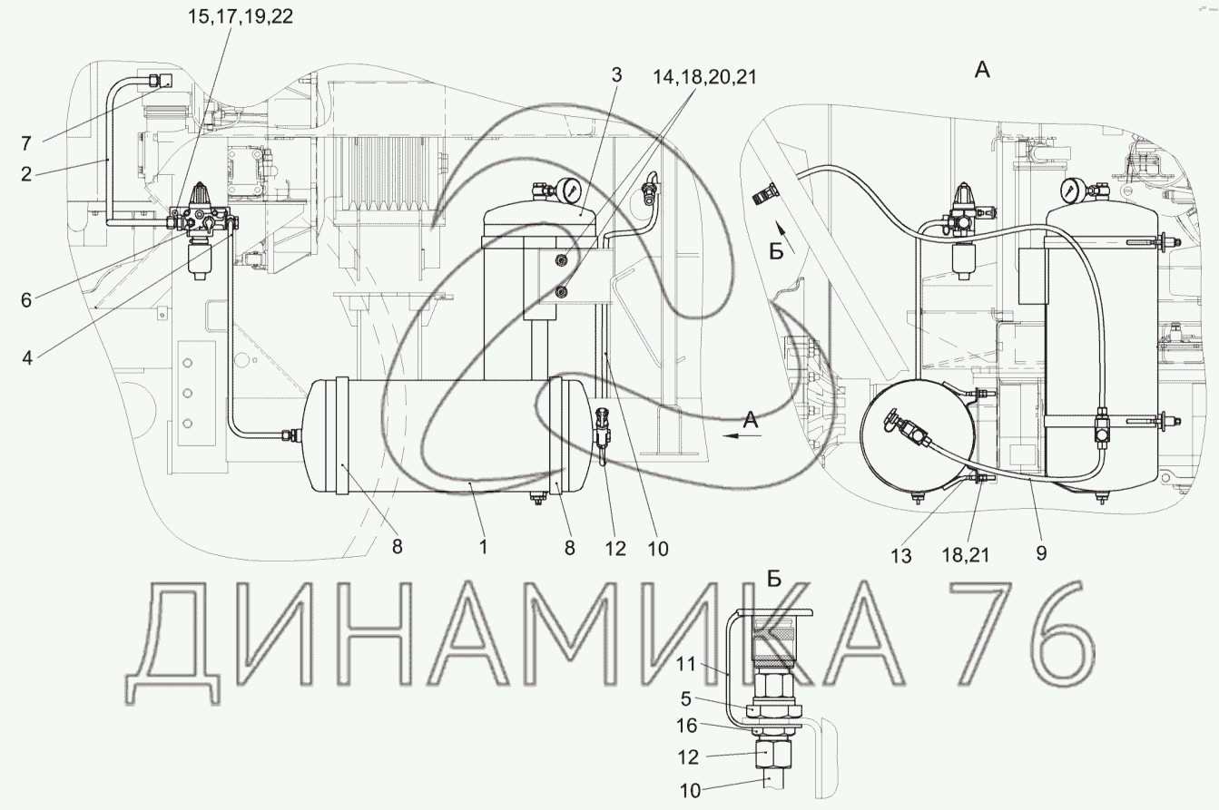 Перечень комплектующих от Пневмосистема КГС 0180000 на КСК-600