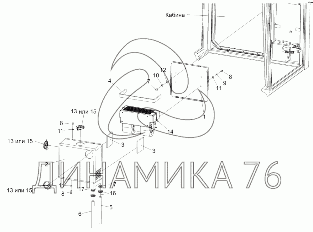 Перечень комплектующих от Установка отопителя КГС 0120980 на КСК-600