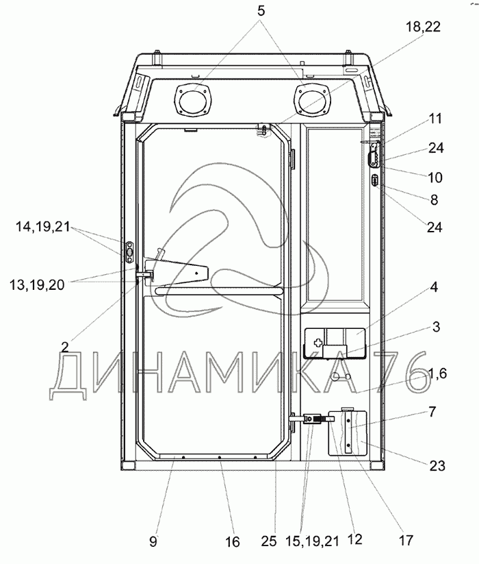Перечень комплектующих от Кабина КГС 0120000Б на КСК-600
