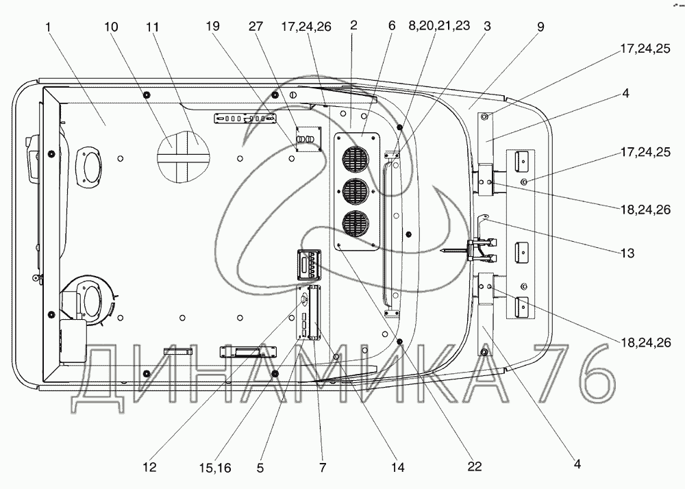 Перечень комплектующих от Кабина КГС 0120000Б на КСК-600