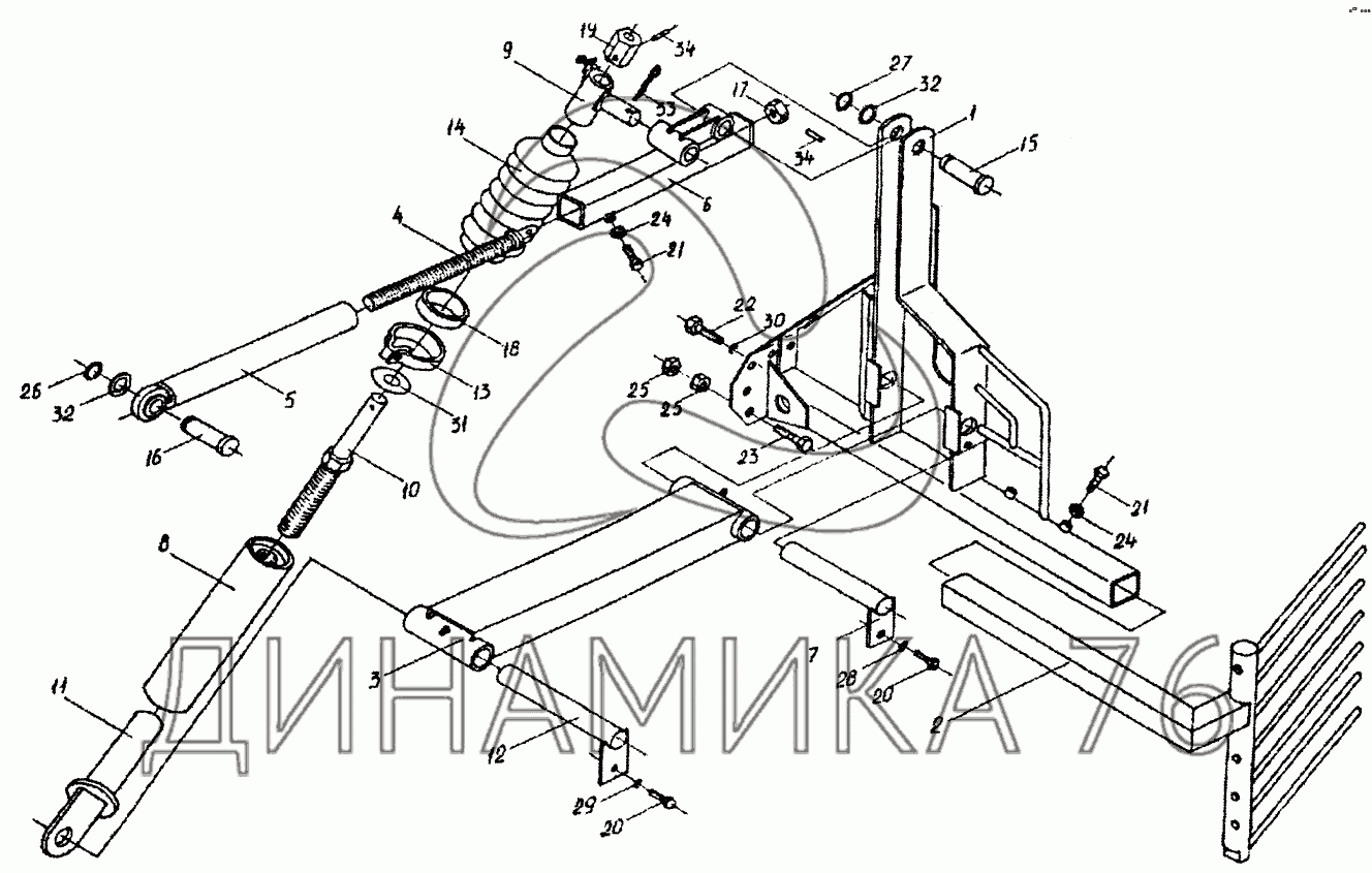 Перечень комплектующих от Рамка, тяги валкоукладчика (левые) на КСН-6