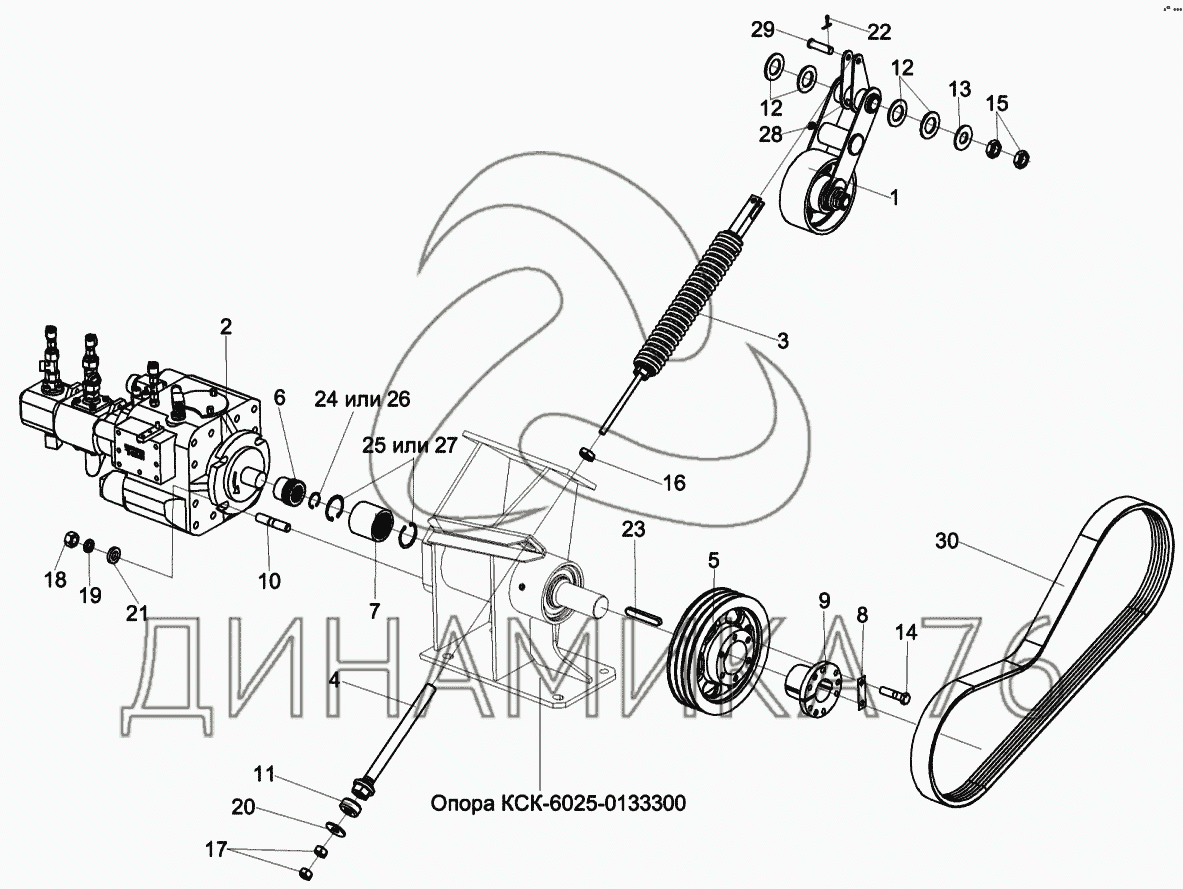 Перечень комплектующих от Передача ременная КСК-6025-0133000 на КВК-6025