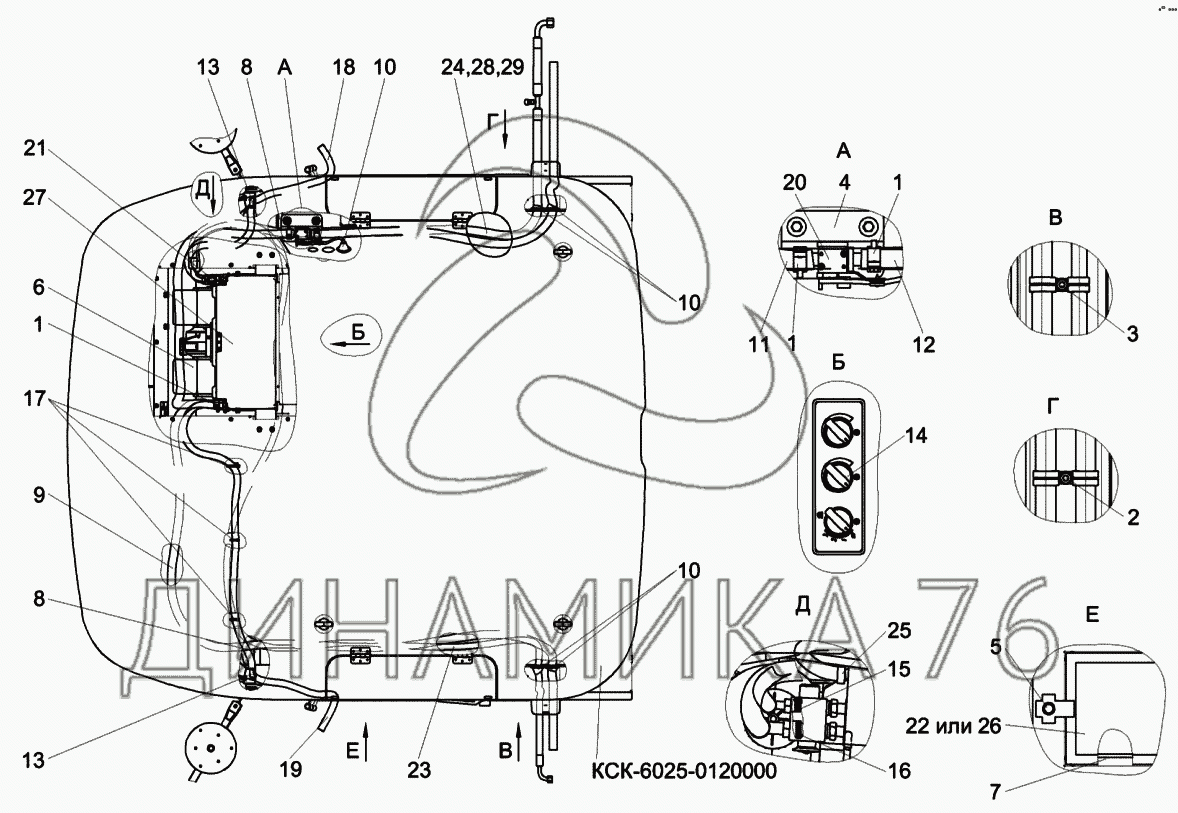 Схемы запчастей предназначены для справочных целей! Мы продаем не все запчасти от Установка испарителя КСК-6025-0121020 на КВК-6025, представленные в этом списке.