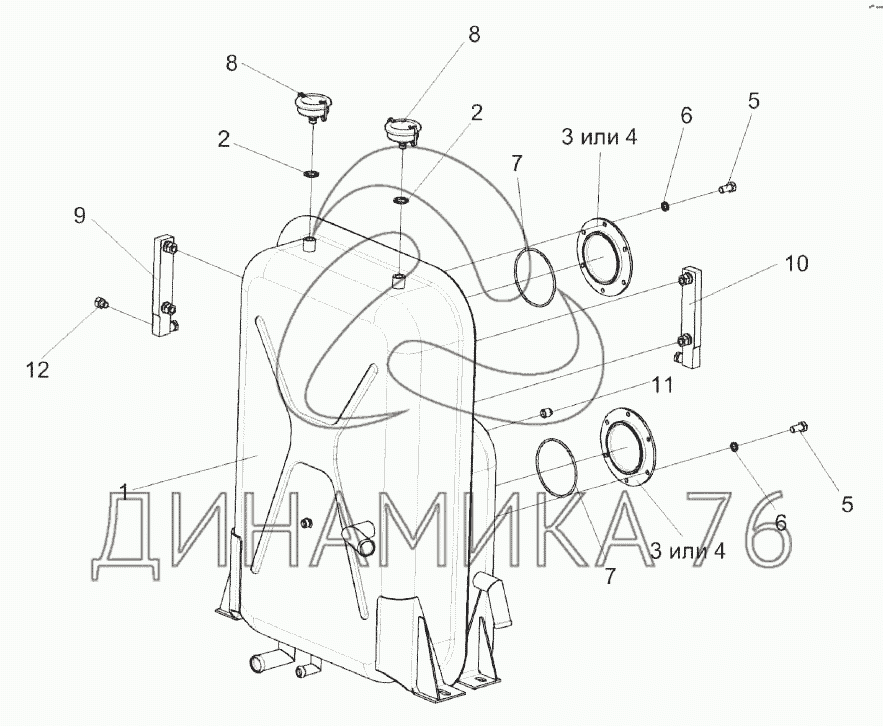 Перечень комплектующих от Бак масляный КВС-2-0601310В на КВК-800 (FS80)