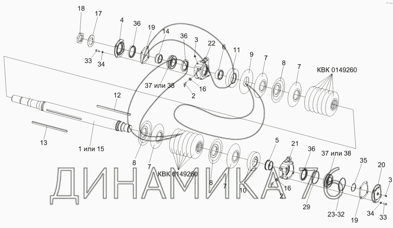 Перечень комплектующих от Валец передний КВК 0149200 на КВК-8060