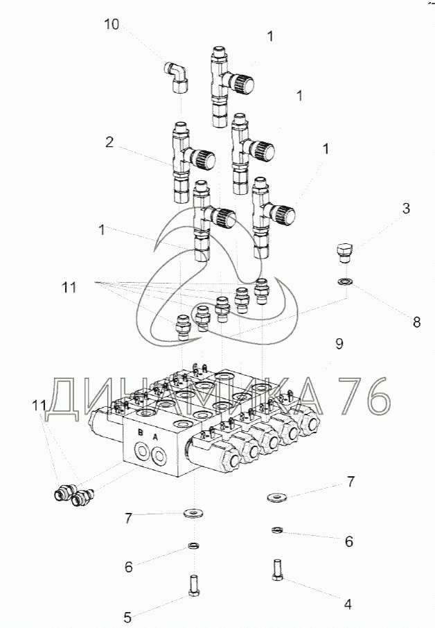 Перечень комплектующих от Гидроблок пятисекционный КВК 0602310В на КВК-8060