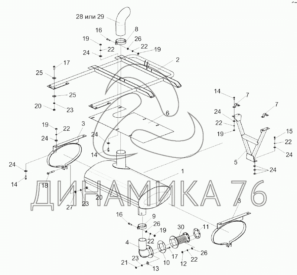 Перечень комплектующих от Установка глушителя КВК 0157000Б на КВК-8060