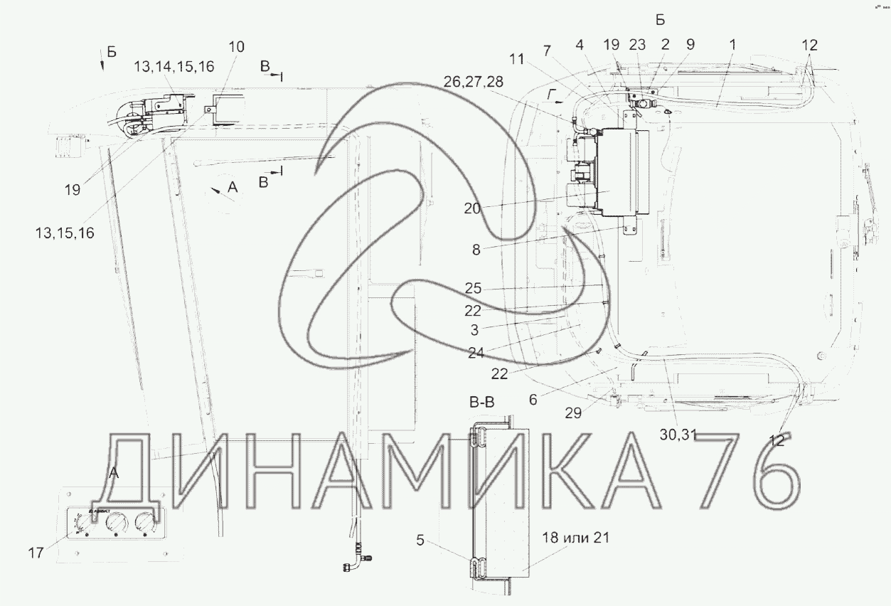 Испарительно-отопительный блок со жгутом в сборе