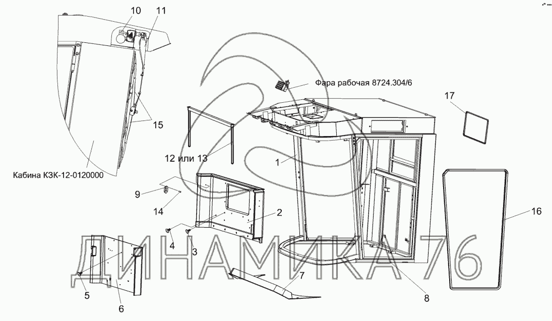 Перечень комплектующих от Кабина КЗК-12-0200000 на КЗС-10К Палессе GS10