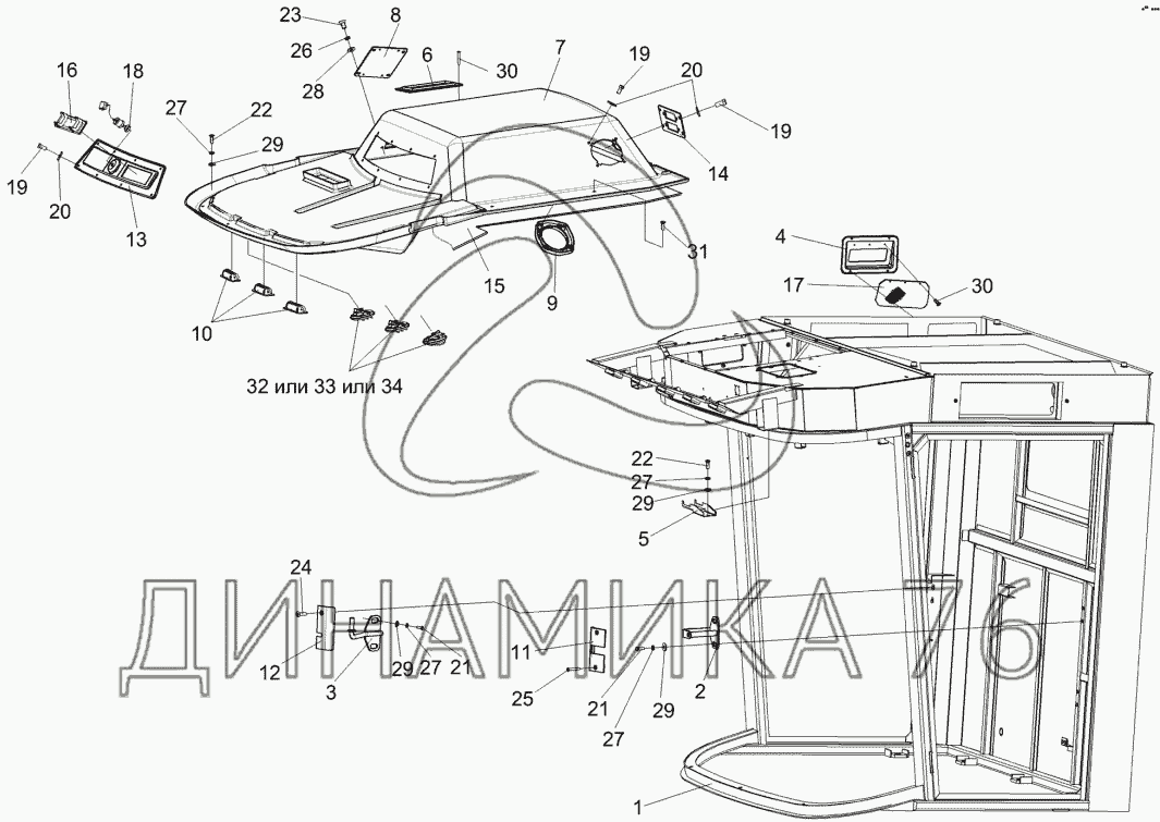 Перечень комплектующих от Кабина КЗК-12-0200000 на КЗС-10К Палессе GS10