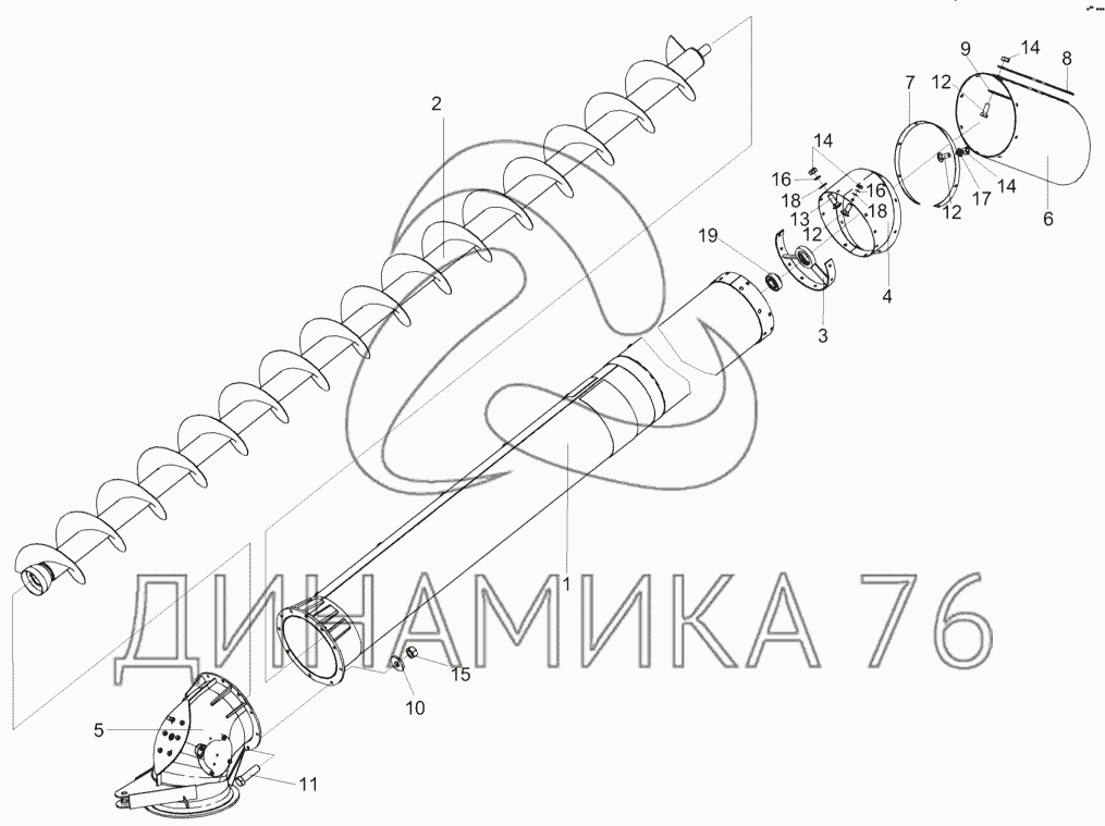 Шнек с отводом КЗК-12-0206000А на КЗС-10К Палессе GS10 (до 2012 г.)
