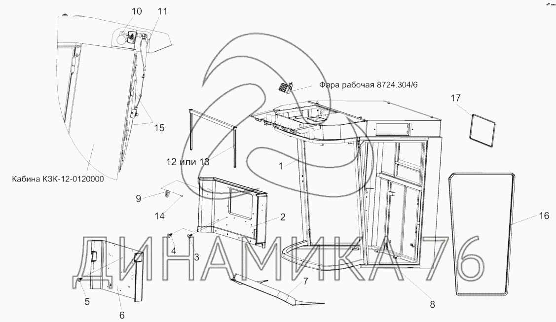 Перечень комплектующих от Кабина КЗК-12-0120000 на КЗС-1218 часть 2