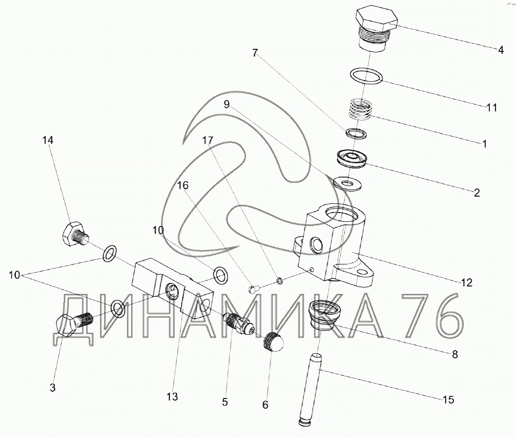 Перечень комплектующих от Гидроцилиндр блокировки диапазонов 3518020-46330 на КЗС-1218А-1