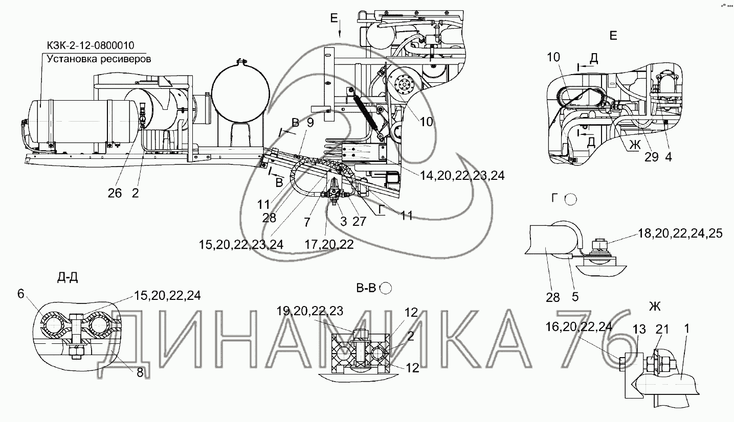 Схемы запчастей предназначены для справочных целей! Мы продаем не все запчасти от Пневмосистема КЗК-12-0800000А на КЗС-1218А-1, представленные в этом списке.
