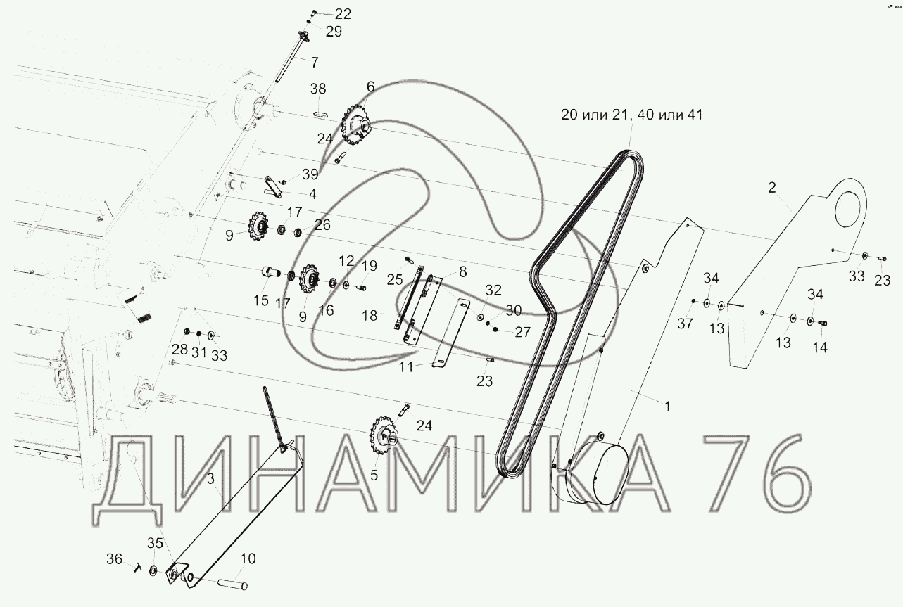 Перечень комплектующих от Привод транспортера наклонной камеры на КЗС-1218А-1