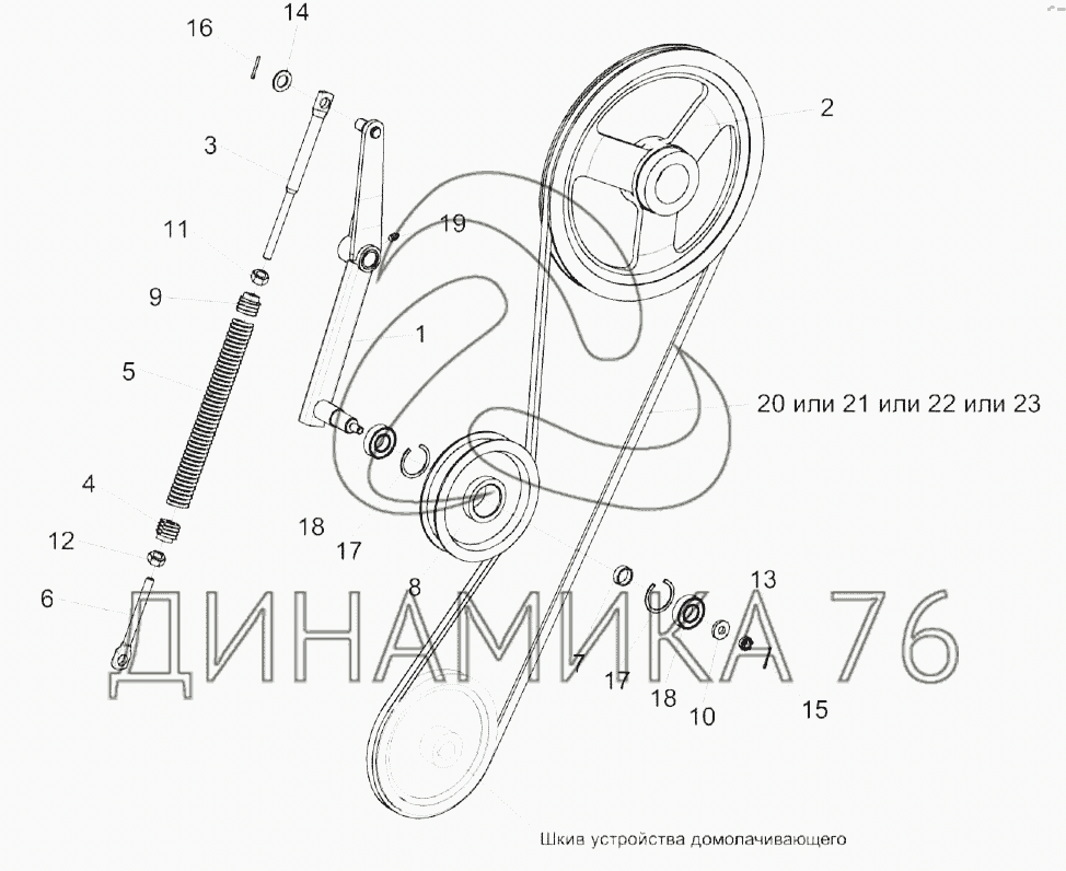 Перечень комплектующих от Установка привода устройства домолачивающего на КЗС-1218А-1