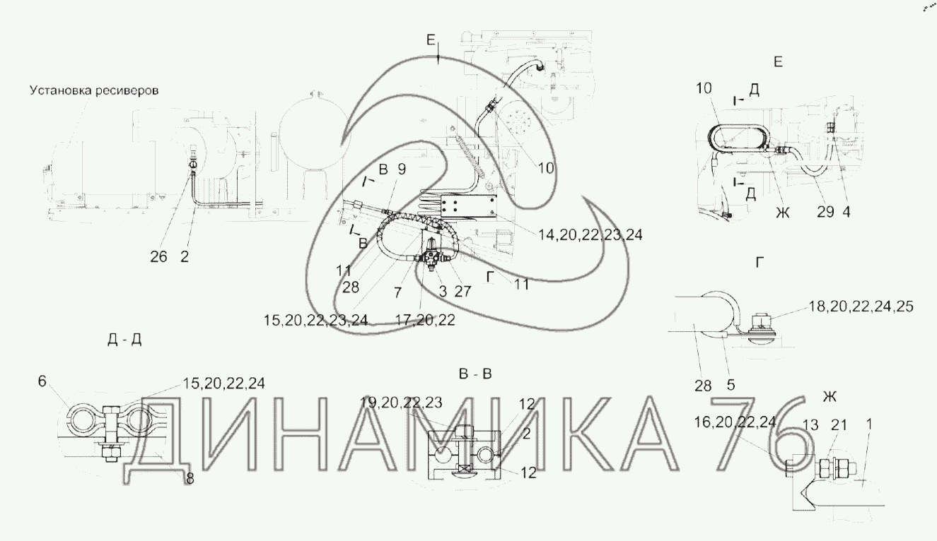 Схемы запчастей предназначены для справочных целей! Мы продаем не все запчасти от Пневмосистема КЗК-12-0800000А на КЗС-1218А-1, представленные в этом списке.