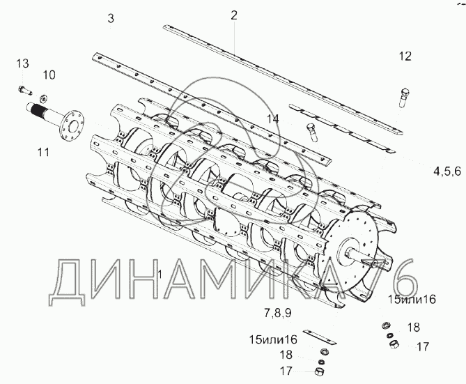 Перечень комплектующих от Барабан молотильный КЗК-14-0104010 на КЗС-1624-1