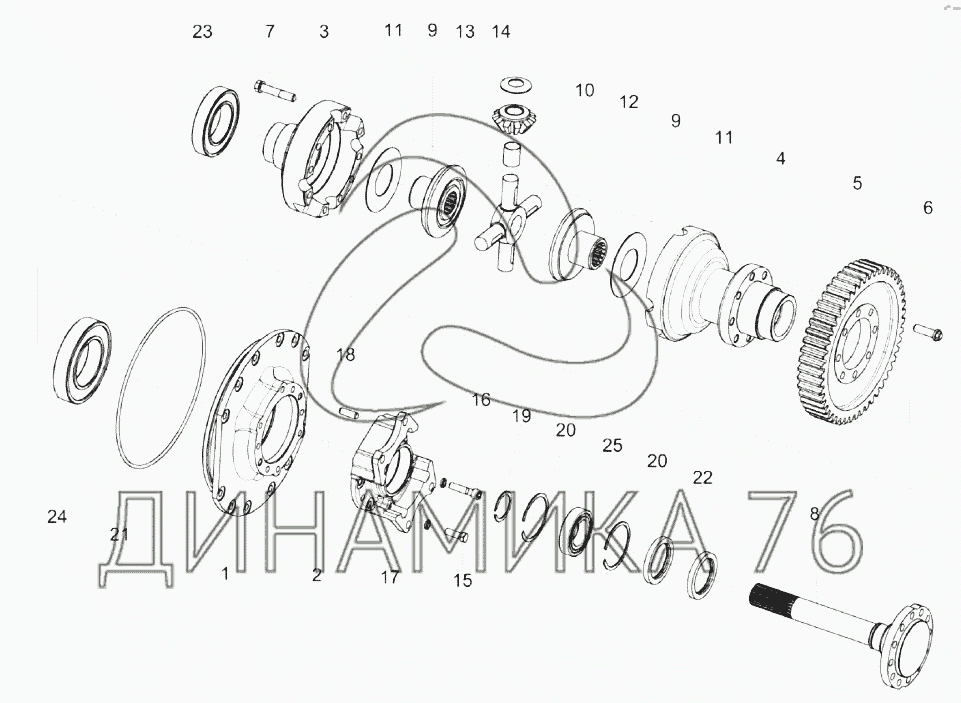 Перечень комплектующих от Блок дифференциала КЗК-1624-0107210 на КЗС-1624-1