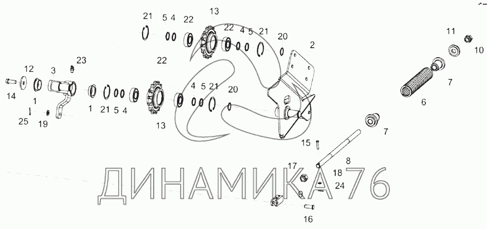 Перечень комплектующих от Механизм натяжения КЗК-14-0221230А на КЗС-1624-1