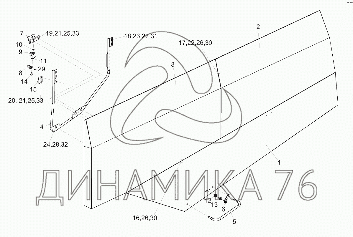 Перечень комплектующих от Капот левый КЗК-1420-0128010 на КЗС-1624-1