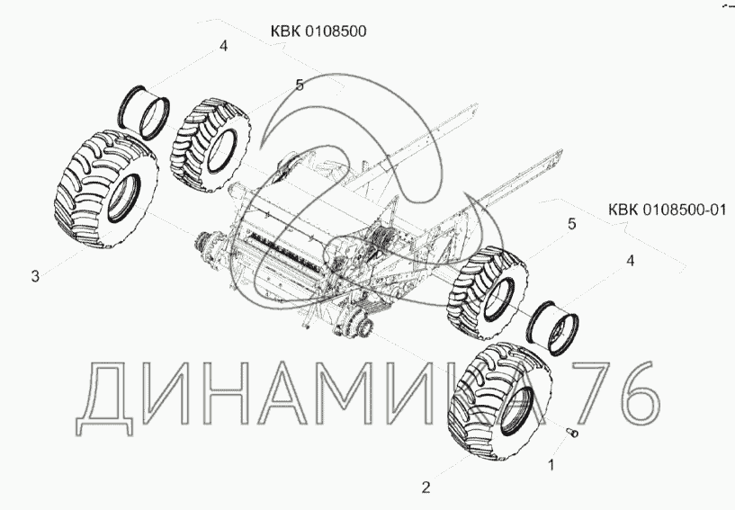 Перечень комплектующих от Установка колес КЗК-1420-0100040 на КЗС-1624-1