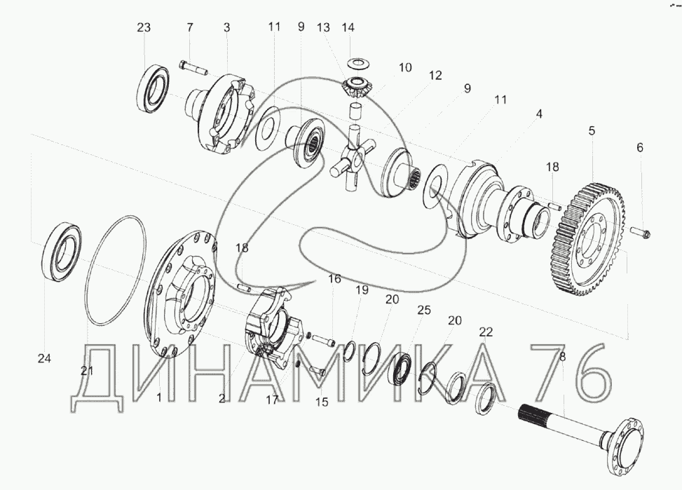 Перечень комплектующих от Блок дифференциала КЗК-1624-0107210 на КЗС-2124КР