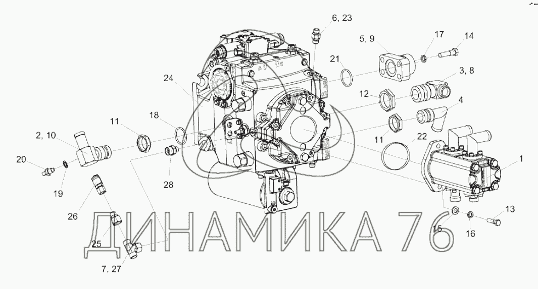 Перечень комплектующих от Гидронасос трехсекционный КЗК-2124-0611100 на КЗС-2124КР