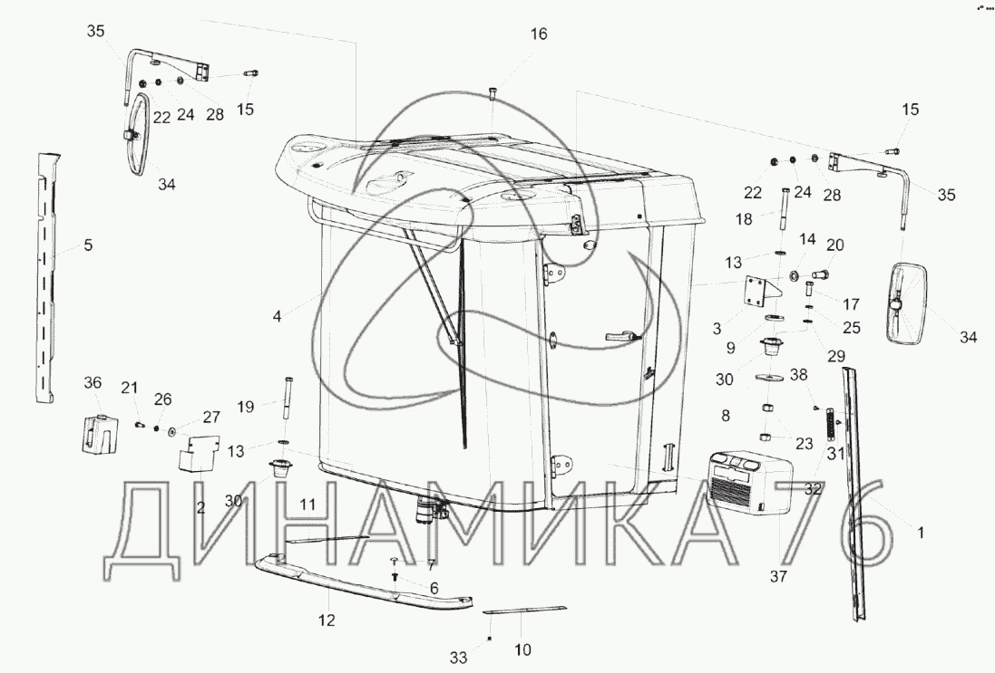Установка кабины КЗК-2124-0120000 на КЗС-2124КР (до 2018 г.)