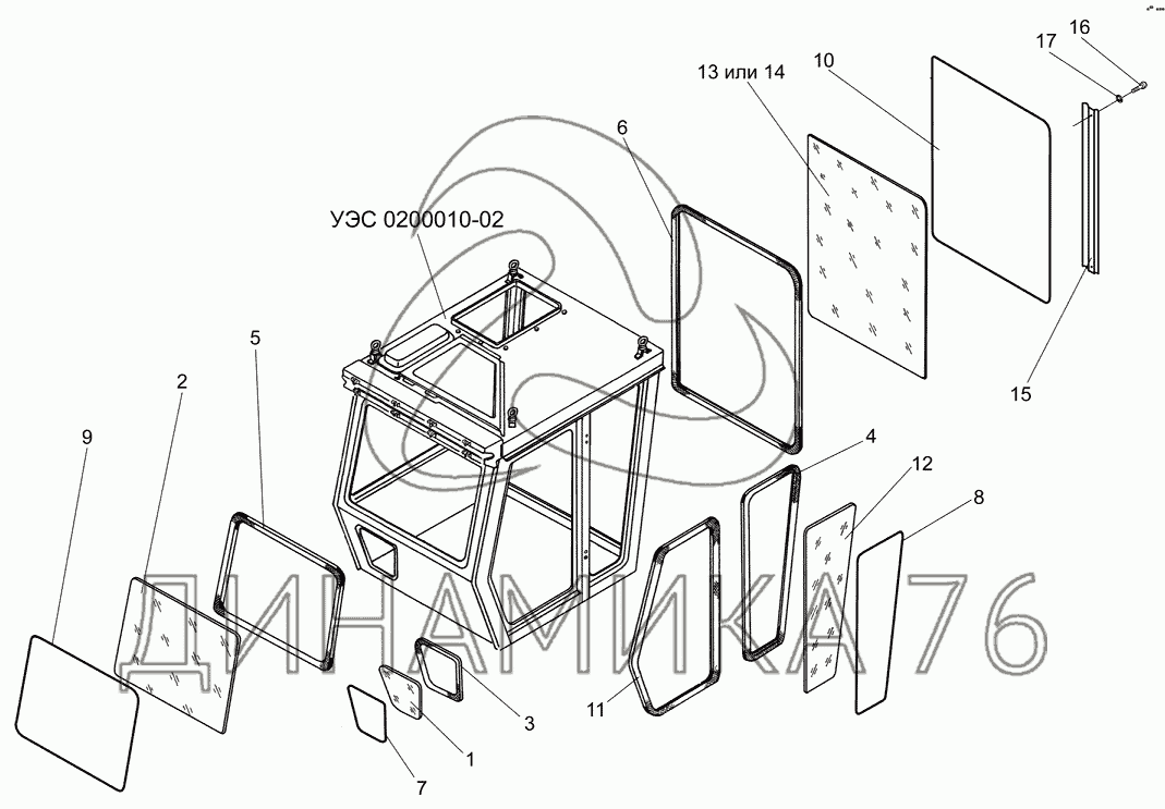 Кабина (стекла и уплотнители) — КЗС-7: