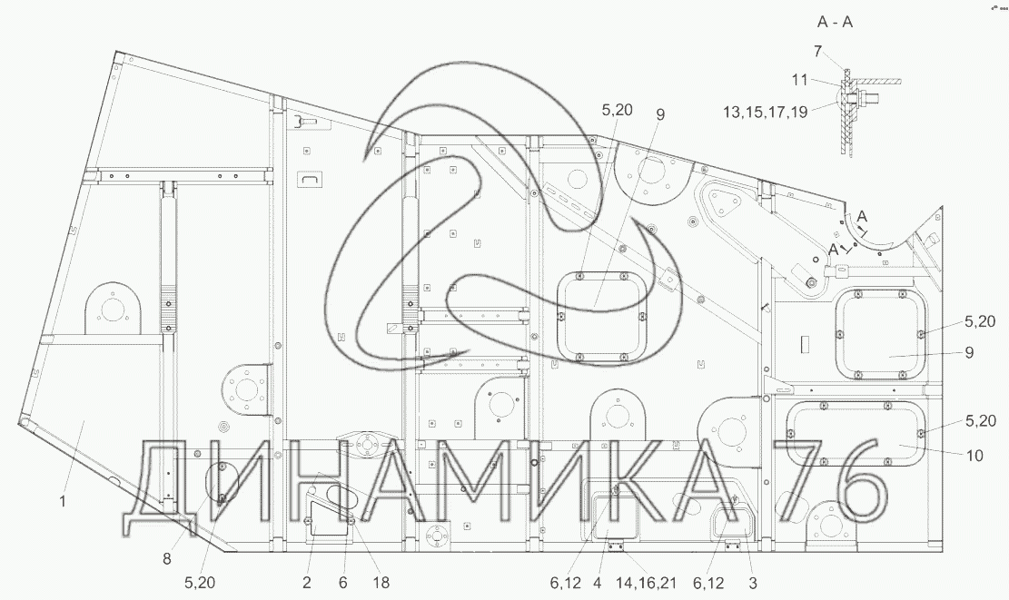 Перечень комплектующих от Боковина правая КЗК-8А-0202060 на КЗС-812