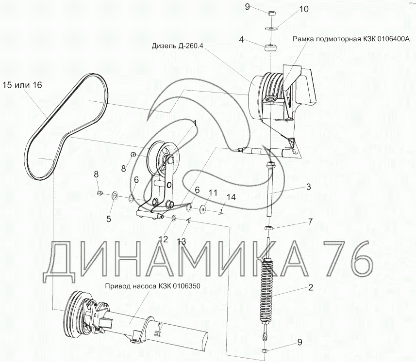 Перечень комплектующих от Привод гидронасоса КЗК 0222500 на КЗС-812