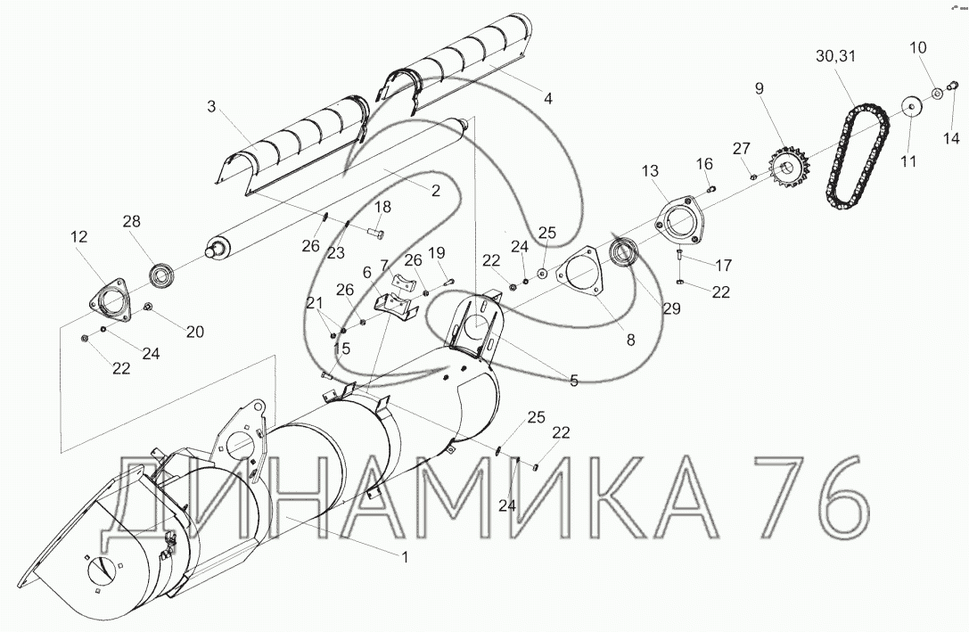 Перечень комплектующих от Шнек выгрузной КЗК-8-0206000-01 на КЗС-812