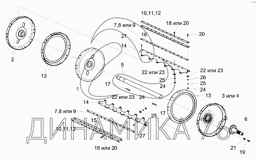 Перечень комплектующих от Барабан молотильный КЗК-8А-0104000 на KЗС-812