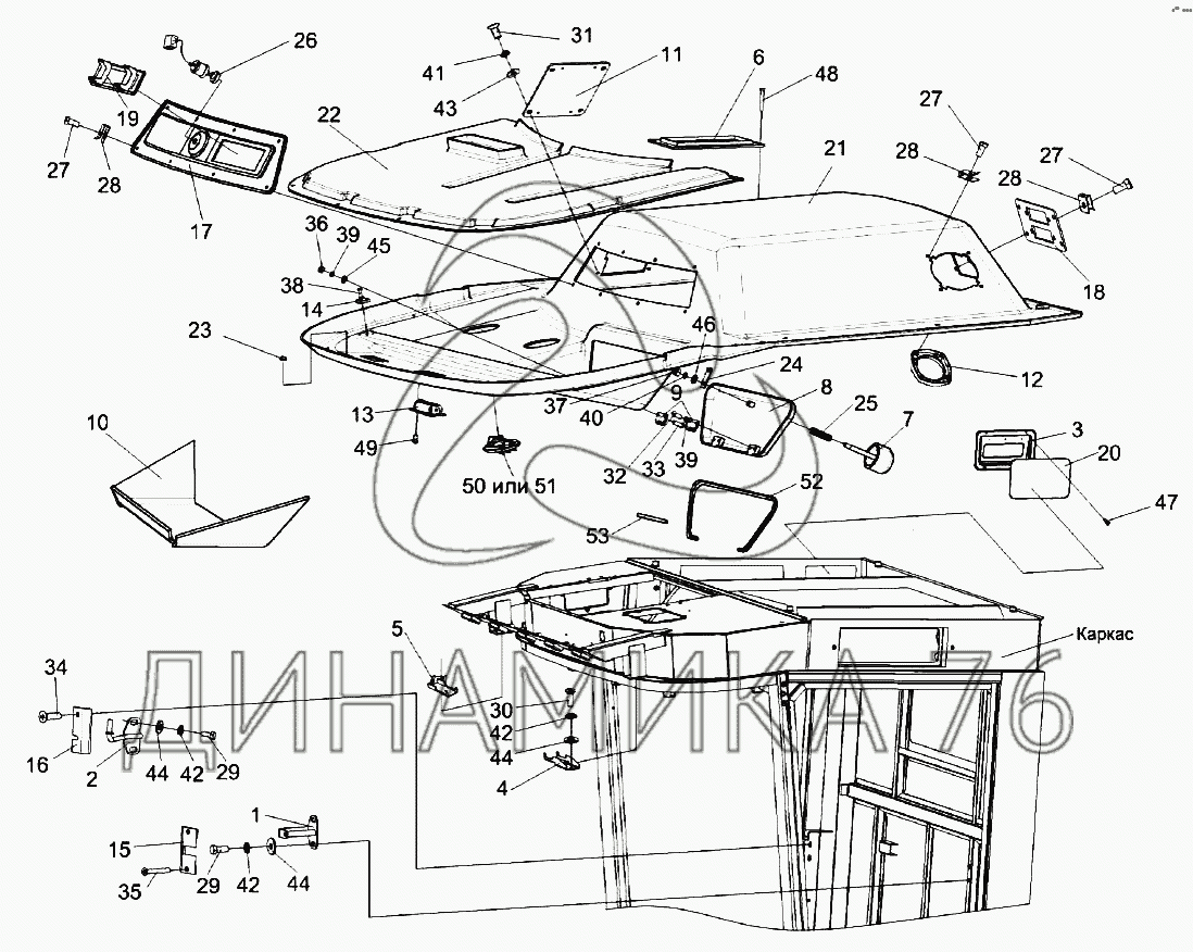 Схемы запчастей предназначены для справочных целей! Мы продаем не все запчасти от Кабина КЗК-12-0120000-01 на KЗС-812, представленные в этом списке.