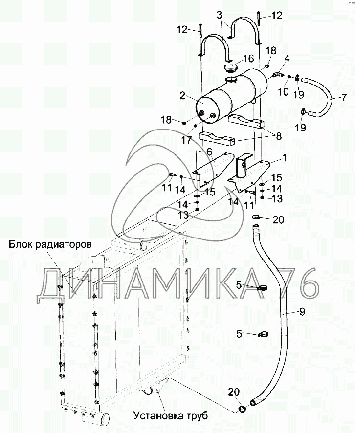 Схемы запчастей предназначены для справочных целей! Мы продаем не все запчасти от Установка бачка расширительного КЗК-8К-0106070 на KЗС-812, представленные в этом списке.