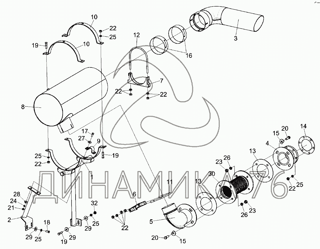 Схемы запчастей предназначены для справочных целей! Мы продаем не все запчасти от Установка глушителя КЗК-8К-0106060 на KЗС-812, представленные в этом списке.