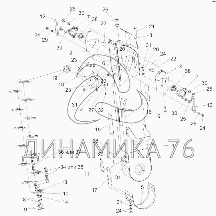 Перечень комплектующих от Элеватор колосовой КЗК 0208000А-02 на KЗС-812