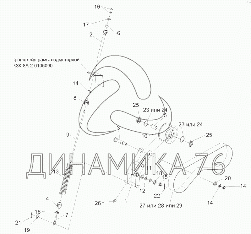 Перечень комплектующих от Привод гидронасоса КЗК-8А-2-0222500 на KЗС-812