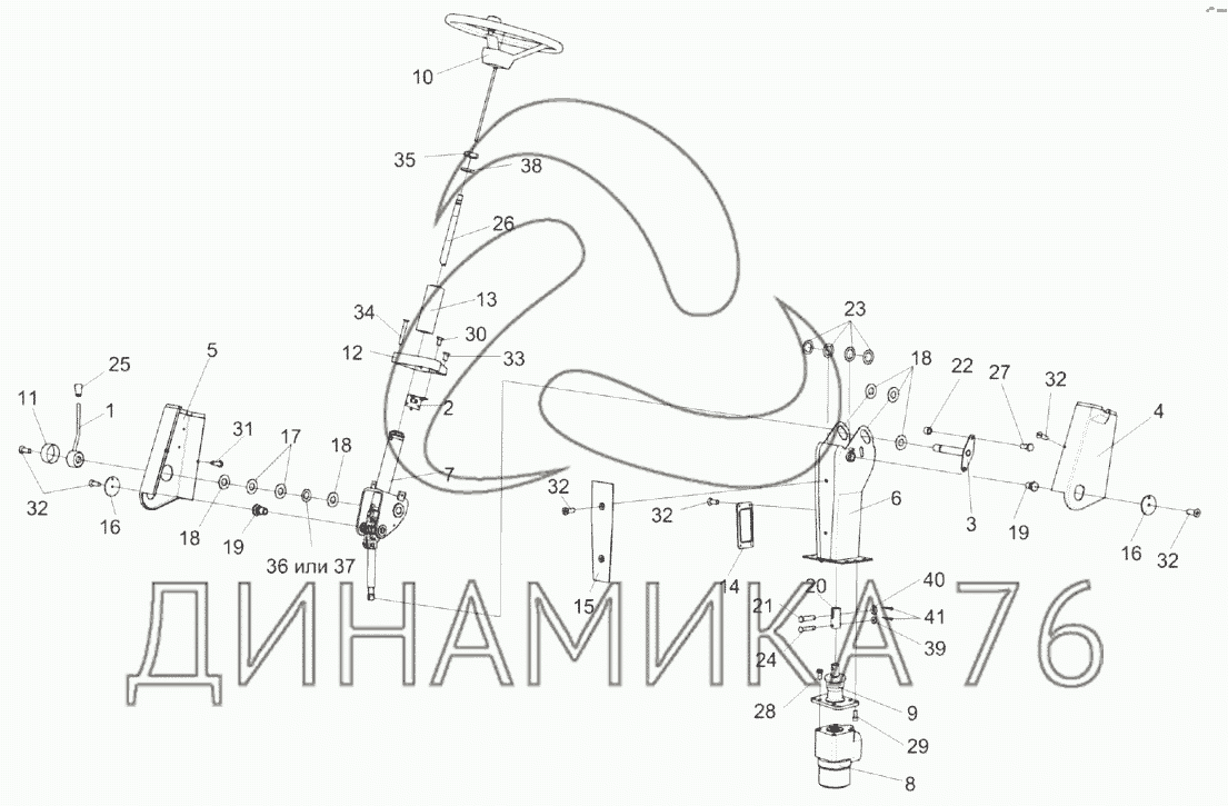 Перечень комплектующих от Рулевая колонка КЗК-8К-0119230 на KЗС-812
