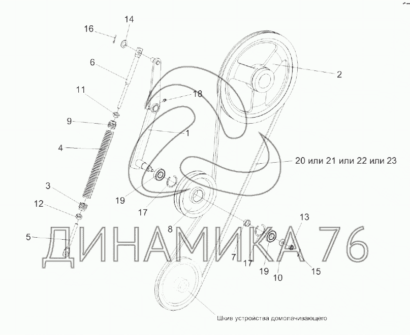 Перечень комплектующих от Установка привода устройства домолачивающего на KЗС-812