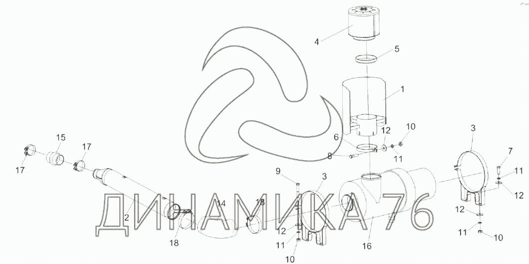Перечень комплектующих от Установка воздухоочистителя КЗК-8А-2-0106080 на KЗС-812