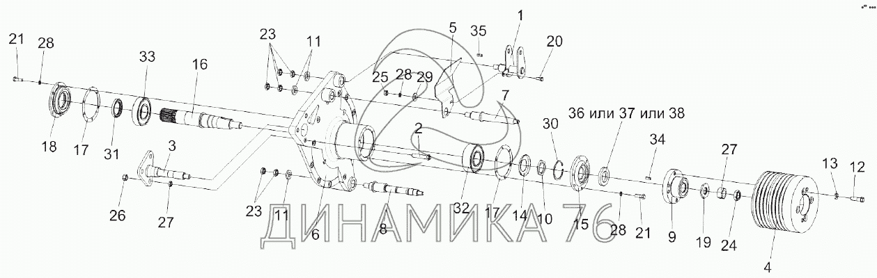 Перечень комплектующих от Главный привод КЗК-8А-2-0106270 на KЗС-812