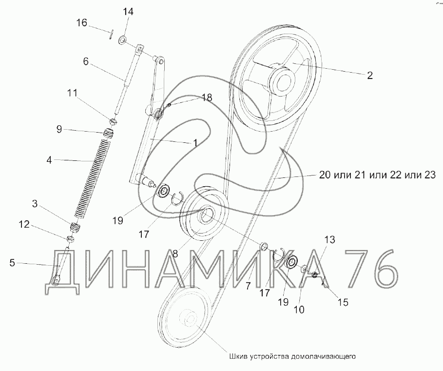 Перечень комплектующих от Установка привода устройства домолачивающего на KЗС-812